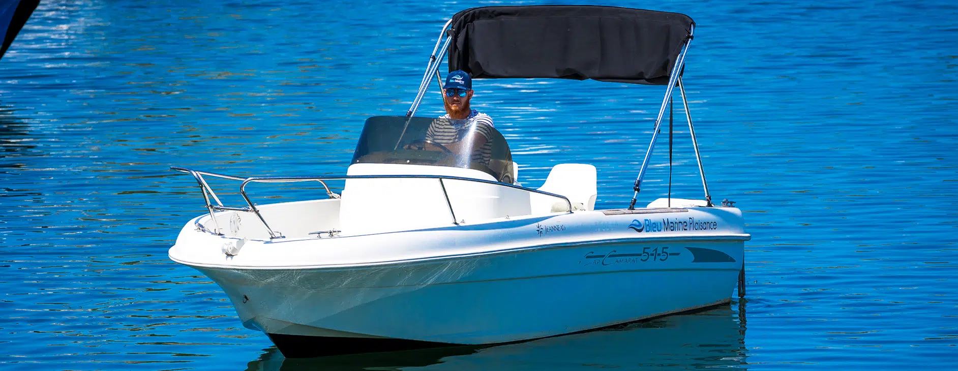 Louez le Navy Blue 6, un bateau sans permis spacieux de 5,50 m, idéal pour profiter d’une sortie en mer au Cap d’Agde jusqu’à 6 personnes. Facile à piloter et accessible à tous, il permet de naviguer simplement et de profiter du littoral méditerranéen.